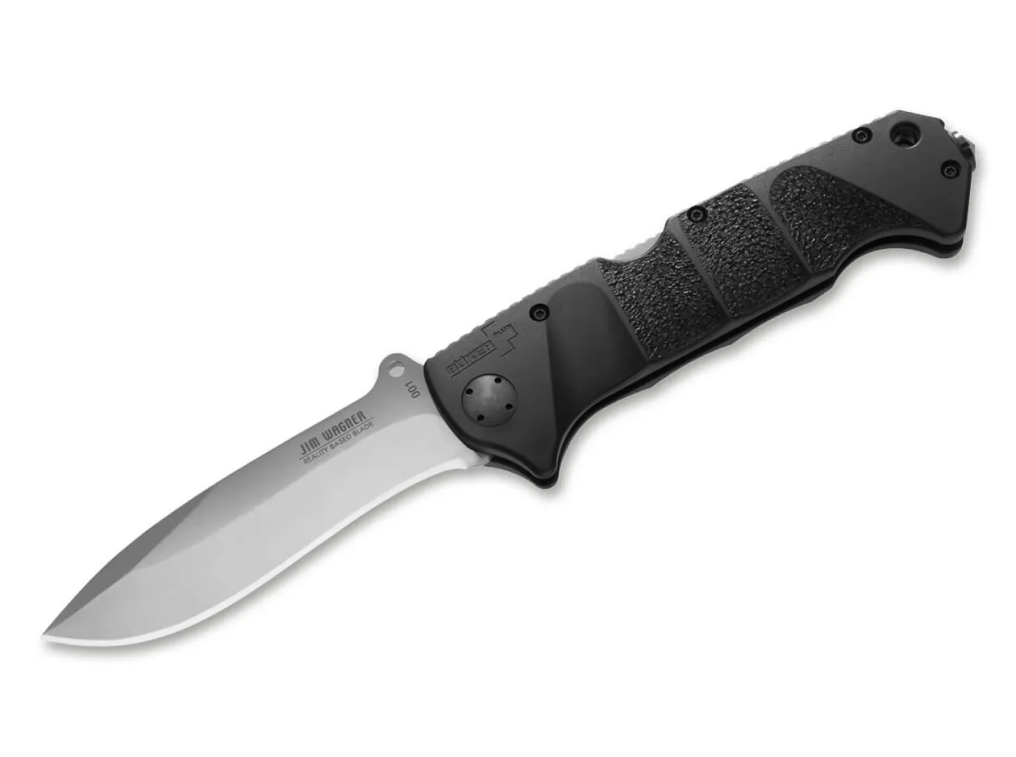 Das bewährte Böker Plus RBB von Jim Wagner ist in dieser Variante mit einer matt gestrahlten Recurve-Klinge aus 440C ausgestattet. Die Klinge wird zweihändig geöffnet und von einem stabilen Backlock zuverlässig arretiert. Dank ihrer vielseitigen Klingenform meistert sie alle anfallenden Schneidarbeiten mühelos, egal ob in der Wildnis oder im Alltag. Die rutschfesten Griffschalen aus texturiertem Kunststoff sind mit ergonomischen Fingermulden versehen und liegen stets sicher in der Hand. Mit Glasbrecher, Fangriemenöse und praktischem Deep-Carry-Clip (Tip-up/r).