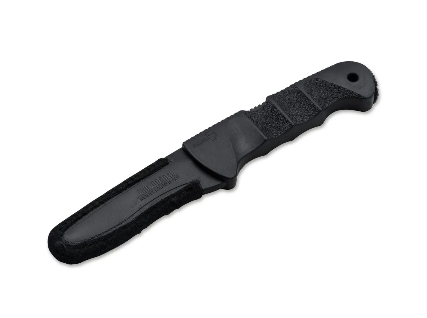Das RBB Trainingsmesser entspricht bezüglich der Dimensionen und Form dem Erfolgsmodell Böker Plus Reality Based Recurve, um ein möglichst realistisches Training zu gewährleisten. Sowohl die „Schneidkante“ als auch die mögliche Schlagfläche des Griffs sind mit einer robusten und abriebfesten Textilfläche ausgestattet, die mit den beiden mitgelieferten Stiften in den Farben blau und rot markiert werden kann. (Alternativ kann auch handelsüblicher Lippenstift eingesetzt werden.) Sämtliche Treffer können somit unmittelbar und eindeutig dokumentiert und auch direkt aufgrund der unterschiedlichen Farben der Schneide, dem Klingenrücken bzw. dem Griffende des Trainingsmessers zugeordnet werden. Das neu konzipierte Böker Plus RBB Training Tool erlaubt eine deutlich genauere Analyse der Trainingsaktivitäten und gewährleistet einen realitätsbezogenen und professionellen Einsatz.
