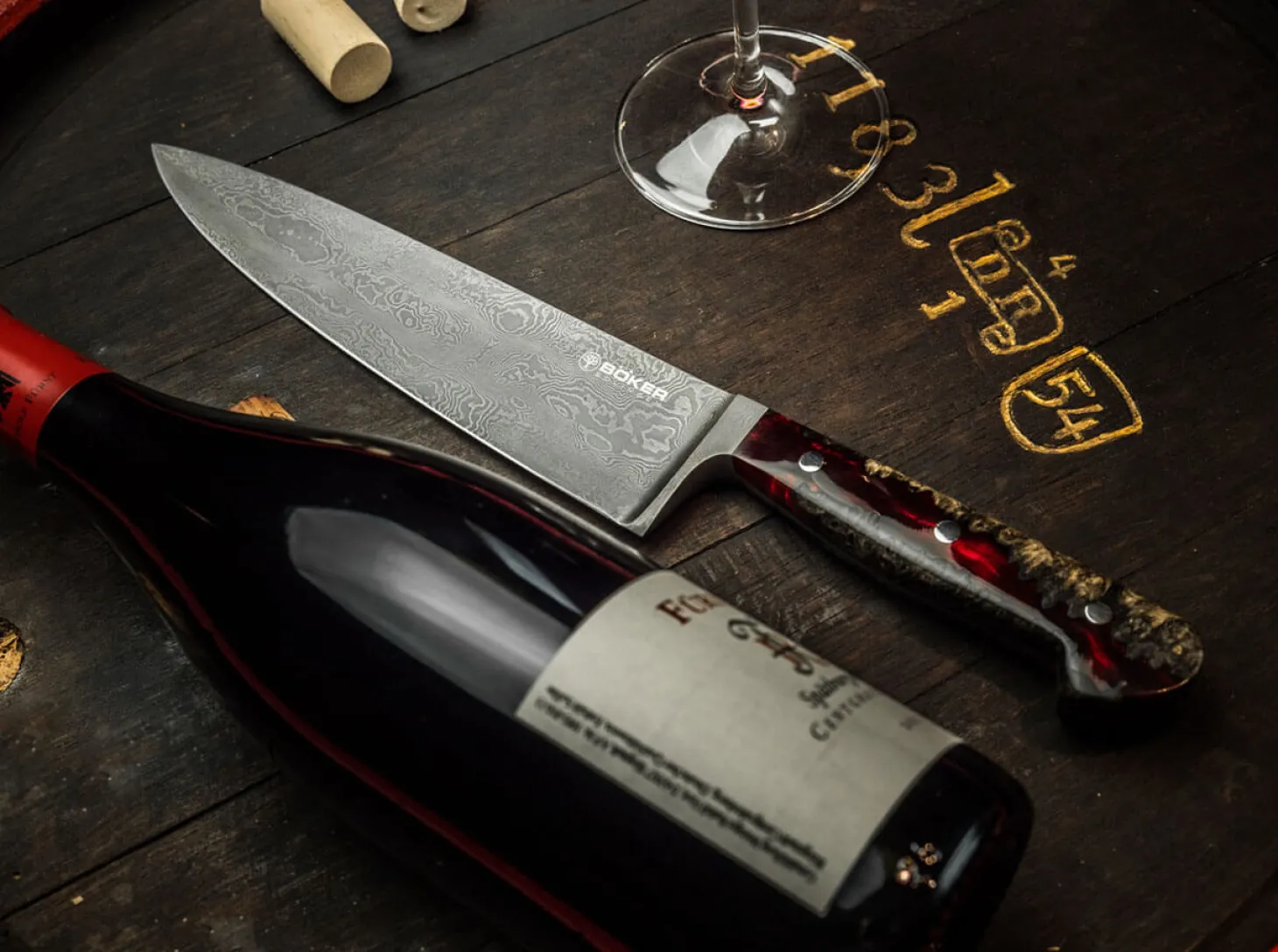 Das beeindruckende Böker River Damast Chefmesser ist im wörtlichen Sinne ein Stück lebendige Geschichte, denn der 180-lagige Damast wurde von Chad Nichols aus einem massiven Teil der Welle eines alten Transmissionsrades unserer Manufaktur geschmiedet. Im nächsten Schritt wird das verschmiedete Spaltstück bei uns in Solingen in der Gesenkschmiede weiterverarbeitet. Nachdem es dort bis zur Rotglut erhitzt wurde, wird es von einem zwei Tonnen schweren Fallbär in einer massiven Form in Kontur geschlagen. Der Griff des außergewöhnlichen Kochmessers im klassischen Solinger Drei-Nieten-Design steht der Klinge optisch und funktional in Nichts nach. Der atemberaubende Tiefeneffekt erinnert an einen mystischen Fluss und wird durch die Kombination von zertifiziert importiertem Amboinaholz mit rotem Harz hervorgerufen. Die Auslieferung des weltweit auf nur 39 Stück limitierten Kochmessers erfolgt mit individueller Seriennummer in einer lederbezogenen Geschenkverpackung und mit Echtheitszertifikat. Handgefertigt in der Böker Messer-Manufaktur Solingen.Das Chefmesser, oder auch Kochmesser, zählt zu den wichtigsten Messern in der Küche und gehört zur Grundausstattung. Es hat eine etwas breitere und längere Klinge als das Allzweckmesser. Die schlanke Spitze eignet sich ausgezeichnet dazu Zwiebeln oder kleines Gemüse zu schneiden. Dank seiner Länge kann man es aber auch hervorragend als Fleischmesser benutzen. Auch große Gemüsesorten lassen sich problemlos damit verarbeiten.