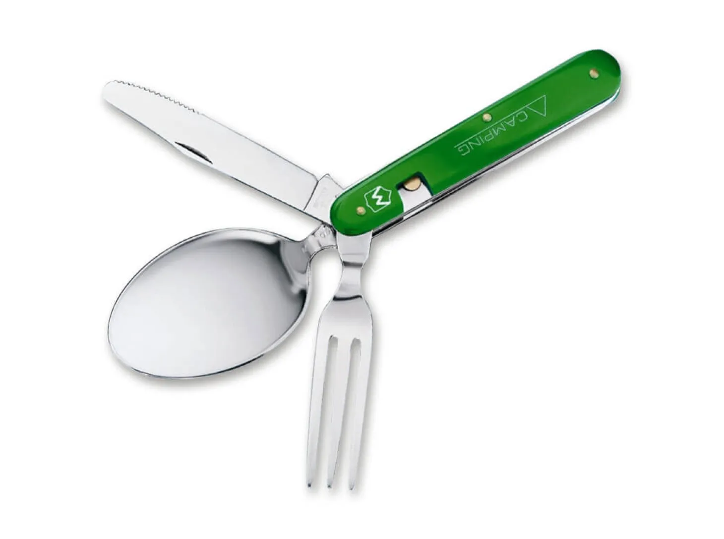 Mercury aus Maniago ist hauptsächlich bekannt für seine klassischen Taschenmesser mit Hirschhornbeschalung. Mit einem farbenfrohen Konzept präsentiert der italienische Hersteller das praktische Campingbesteck Rover mit den wesentlichen Hauptbestandteilen Messer, Gabel und Löffel. Verwendet wird der bewährte 420 Stahl, während der erfrischend grüne Griff aus Aluminium besteht.