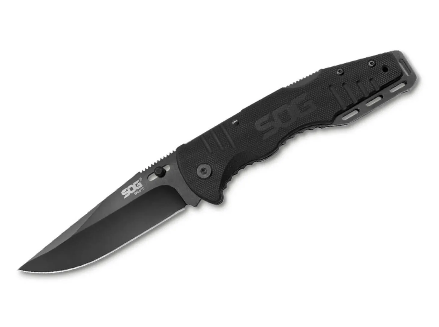 Das SOG Salute ist ein stabiler taktischer Folder, der dank strukturierter G10-Griffschalen auch bei schlechten Witterungsbedingungen sicher in der Hand liegt. Die beschichtete Klinge aus 8Cr13MoV verriegelt per Backlock und wird mithilfe des verstellbaren Daumenpins geöffnet. Mit Deep-Carry-Clip (Tip-up) und Fangriemenöse.