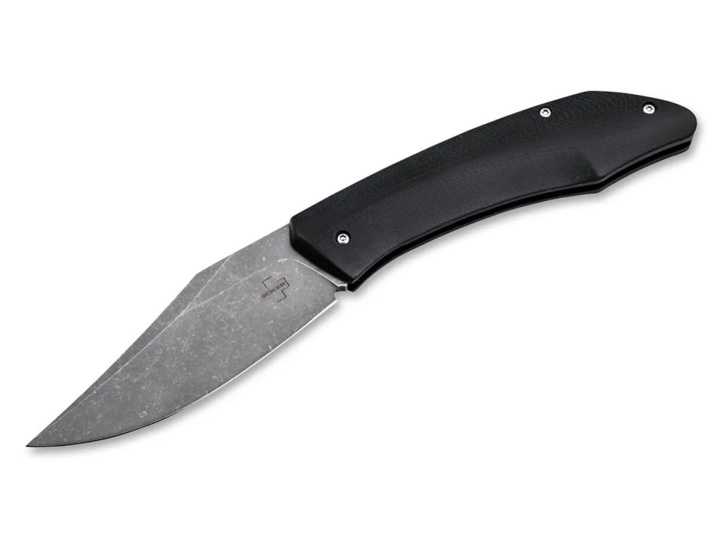 Ausgestattet mit den Genen des erfolgreichen Böker Plus Frelon präsentieren die französischen Messermacher Raphael Durand und Samuel Lurquin mit dem SamoSaur das nächste alltagstaugliche Taschenmesser. Die Besonderheit liegt in der Bauart des Slipjoint Mechanismus, die als Cran Forcé bezeichnet wird. Hierbei drückt eine verstärkte Rückenfeder permanent auf die Klingenwurzel und sorgt für einen satten Widerstand beim Öffnen und Schließen des Messers. Die Clippoint Klinge aus D2 meistert die täglichen Schneidarbeiten souverän und ist mit einer Fehlschärfe am Klingenrücken sowie einem kernigen Stonewash-Finish versehen. Die konturierten Griffschalen aus G10 liefern in jeder Lage sicheren Halt und runden das aufgeräumte Erscheinungsbild des Böker Plus SamoSauer formschön ab. Lieferung mit hochwertigem Nylon Etui. Ohne Clip.