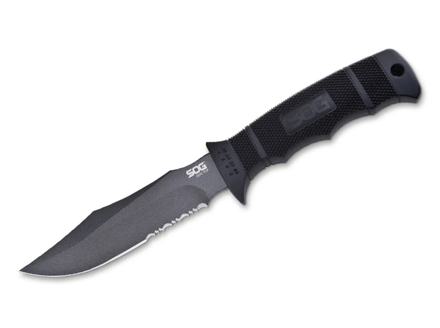 Die kompakte Ausführung des legendären SEAL Messers mit der typischen Klingenform, gefertigt aus AUS-8 und mit einem partiellem Wellenschliff versehen. Das SEAL Pup ist der ideale Outdoor-Begleiter, auch bei Unterwasserabenteuern. Mit Fangriemenöse und passgenauer Kydex-Scheide.