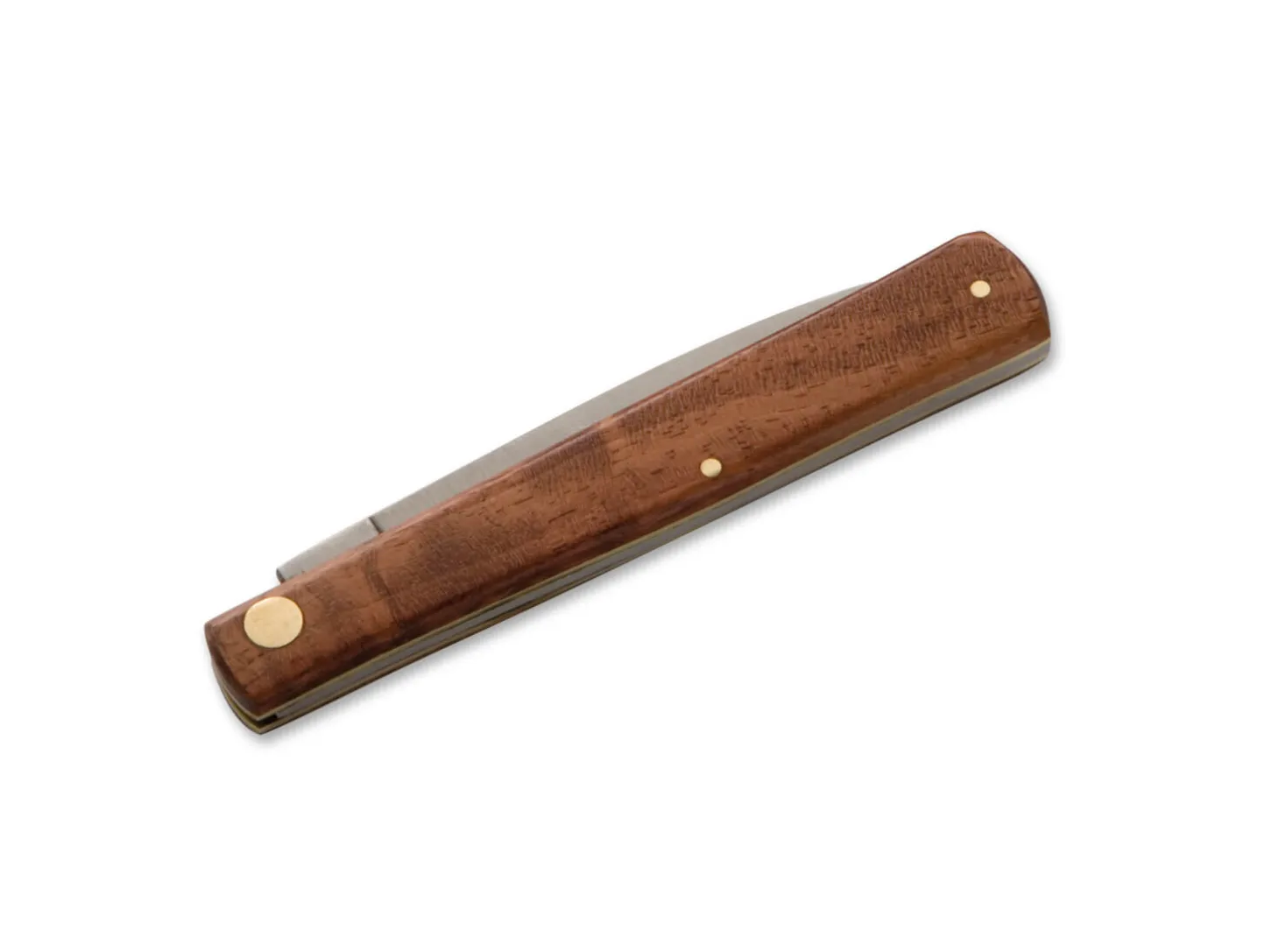 Die typisch gerade und langgestreckte Form des Siciliano ist als typisches Gebrauchsmesser aus Sizilien ein perfektes Alltags- und Vespermesser. Die Beschalung aus Kotibé-Holz besitzt einen warmen, leicht rötlichen Farbton und sitzt auf Messingplatinen. Die schlanke Klinge aus rostfreiem 420er Klingenstahl wird durch die kräftige Feder des Slipjoint offengehalten.