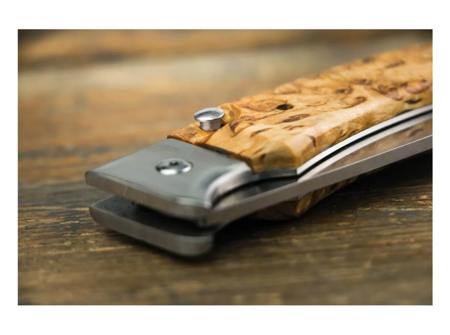 Ein erstklassiges Taschenmesser wie das Singi von Karesuando begleitet einen ein Leben lang. Die Klinge wird aus Sandvik 12C27 gefertigt und auf 58 HRC gehärtet. Es besitzt eine leicht zu bedienende Verriegelung, die zwar auf dem Linerlock basiert, jedoch über den Knopf in der Griffschale sehr leicht und komfortabel zu bedienen ist. Die Beschalung besteht aus dem Holz der nordischen Maserbirke, die vor allem so weit jenseits des Polarkreises sehr langsam wächst und hinsichtlich Dichte und Stabilität das mitteleuropäische Birkenholz weit übertrifft. Ein besonderes Merkmal ist der Anhänger aus Lederband und Rentierhorn.