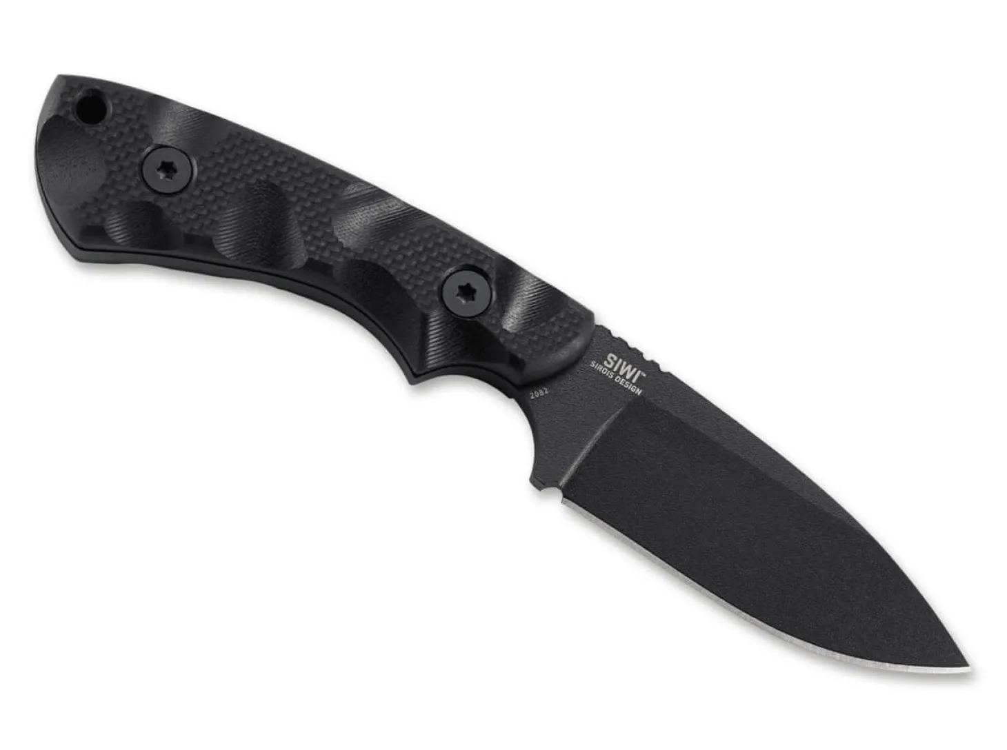 Das bullige, aber überaus kompakte Einsatzmesser Siwi von CRKT wurde vom Designer und Sergeant Major a.D. Darrin Sirois mit einem Ziel entwickelt: Unzerstörbarkeit. Das schnell populär gewordene Design wurde dann noch einmal von Ästhetik-Spezialisten Chris Williams mit einigen kleinen Vorschlägen verbessert und ist jetzt wirklich perfekt. Die über 5 mm starke Droppoint-Klinge aus SK5-Kohlenstoffstahl ist für optimale Korrosionsbeständigkeit schwarz pulverbeschichtet. Die rutschfeste gefräste G10-Beschalung optimiert den Einsatzwert ebenso wie die glasfaserverstärkte Kunststoffscheide mit Gürteladapter.
