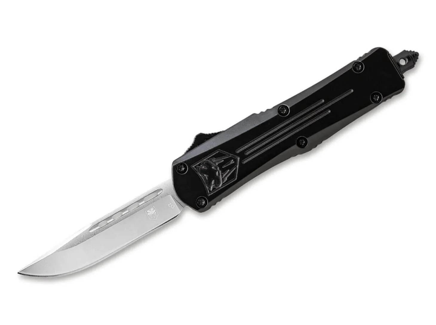 Achtung!Dieser Artikel ist ausschließlich für den Export in zugelassene Märkte bestimmt. Es handelt sich um einen verbotenen Gegenstand gemäß deutschem Waffengesetz. Der Vertrieb in und die Einfuhr nach Deutschland sowie jeglicher Umgang mit diesem Produkt in Deutschland ist verboten. Die Abgabe erfolgt nur an berechtigte Personen, jede Bestellung wird manuell geprüft! Bestellungen aus nicht zugelassenen Märkten werden ohne Rückmeldung gelöscht. Aufgrund der besonderen Rechtslage müssen wir diesen Artikel getrennt von anderen Artikeln versenden, wodurch höhere Portokosten entstehen können.Das kompakte CobraTec Small FS-3 OTF Black überzeugt mit seiner Klinge aus D2 und dem rutschfesten Griff aus hochwertigem Aluminium. Die Klinge kommt via Knopfdruck automatisch aus dem vorderen Griffstück (out the front) heraus. Mit Nylon Etui, Glasbrecher und Clip (Tip-down/r).