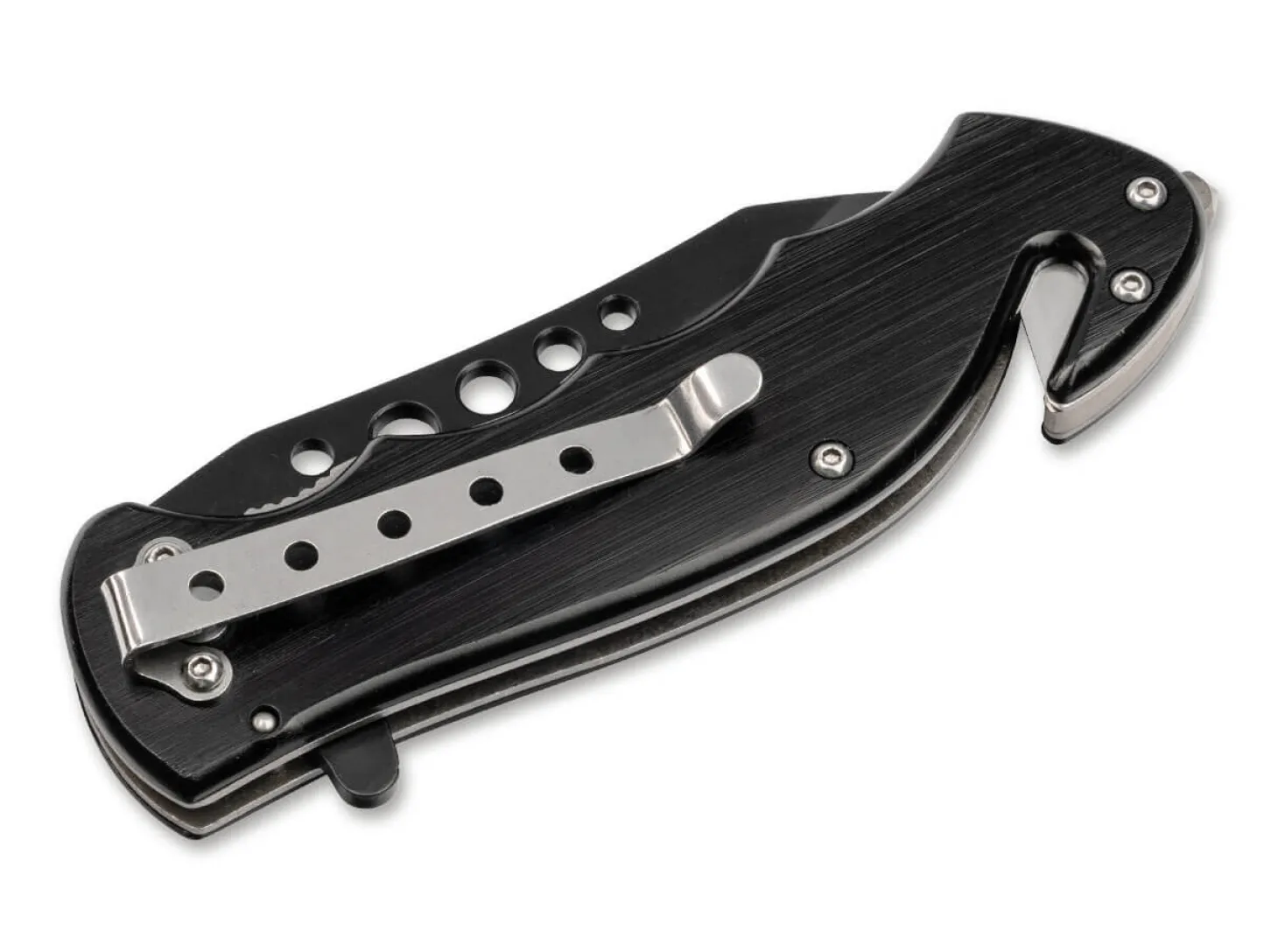 Das Magnum Special Forces ist ein funktionales Rettungsmesser, das den weltbekannten Elite-Einheiten der amerikanischen Streitkräfte gewidmet ist. Der leichtgewichtige Griff aus schwarz beschichtetem Aluminium trägt ein Emblem mit dem Wappen der Special Forces. Die rostfreie Klinge aus 440A öffnet federunterstützt per Flipper und wird von einem stabilen Linerlock zuverlässig arretiert. Die Bohrungen verleihen der Klinge eine eigene Note und reduzieren zudem das Gewicht. Am Griffende befinden sich ein Glasbrecher und ein Gurtschneider, die das Messer für jede Notfallausrüstung prädestinieren. Mit praktischem Deep-Carry-Clip (Tip-down).