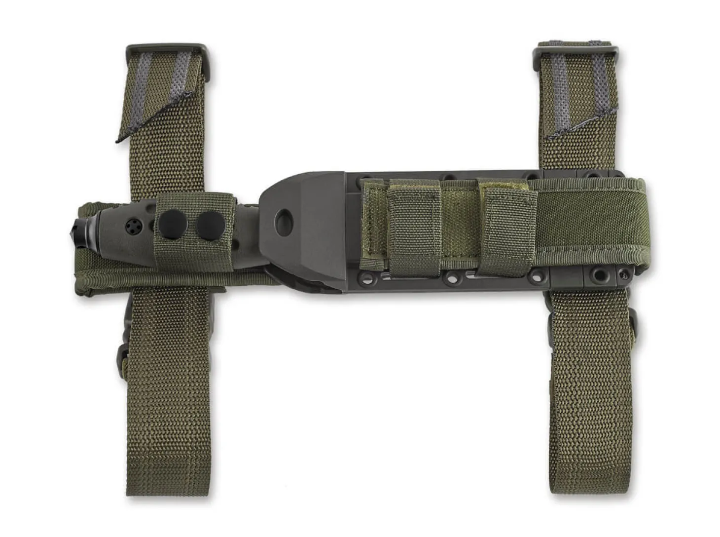 Die FKMD Sputnik Serie glänzt vor allem mit besonders hohem Gebrauchswert und einer extrem sicheren Handlage. Durch das grüne TPR Griffmaterial ist das Sputnik 10 auch bei Nässe oder Kälte sehr komfortabel und sicher zu handhaben, wozu die zahlreichen Mulden und Rillen ihren Teil beitragen. Das kleine integrierte Parierelement trägt ebenso eine Öse wie der Glasbrecher im Griffende, wodurch sich das feststehende Messer zum Beispiel auch an einem Stock festbinden lässt. Die satinierte Klinge aus N690 ist mit ihrer außergewöhnlichen Stärke von 5mm optimal dimensioniert, um Schneidpotential und Stabilität zu vereinen. Die Fehlschärfe der Drop-Point Klinge unterstreicht den taktischen Charakter des Einsatzmessers. Die äußerst funktionale symmetrische Scheide ist aus GFK gefertigt und sitzt in einem Molle-kompatiblen Nylonhalter mit Gürtelschlaufe und abnehmbaren Beingurten.