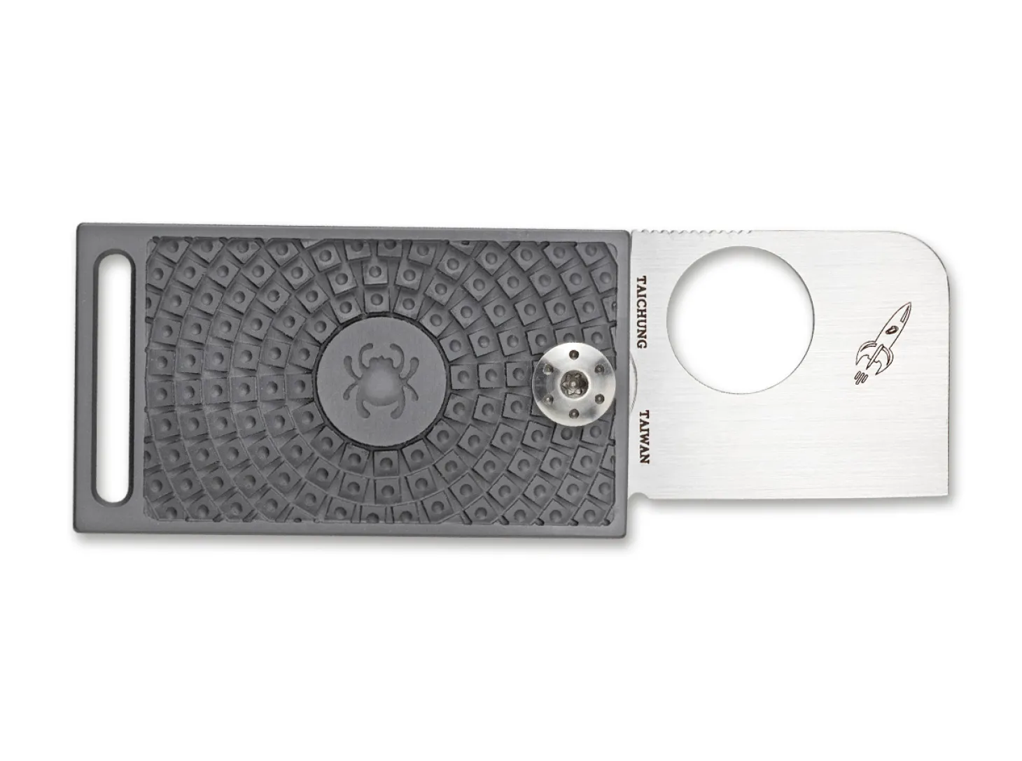 Die Lightweight-Version des Squarehead ist mit einer griffigen FRN-Schale ausgestattet, die mit der für Spyderco typischen rutschsicheren Struktur versehen ist. Mit breiter Öse zum Anhängen an einen Schlüsselbund. Die kompakte Klinge mit Chisel Grind wird aus CTS BD-1 gefertigt. Entworfen wurde das Messer von Darriel Caston.