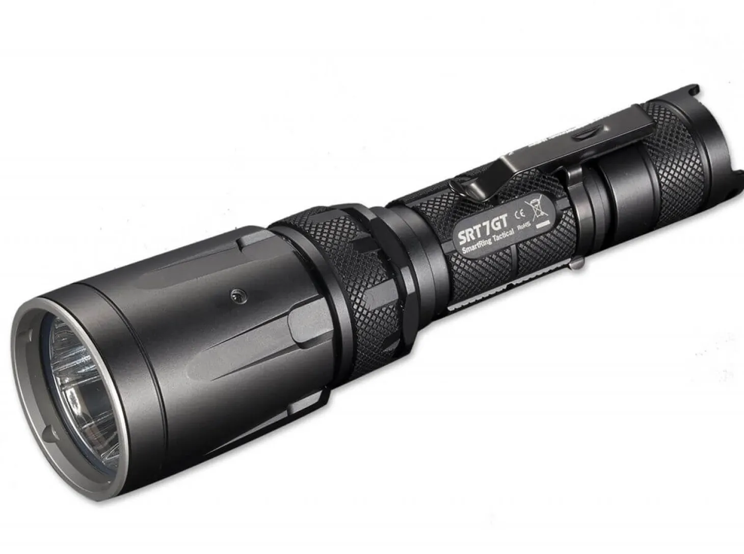 Der Nachfolger der SRT7 glänzt nicht nur mit einer höheren Leistung (1000 Lumen) und einer höheren Reichweite (bis zu 450 m), sondern auch mit verstärkter Leistung der Farb-LEDs (Rot 13 Lm/Grün 19 Lm/Blau 3 Lm) und einer zusätzlichen UV-LED (500 mW, 365 nm). Die stufenlose Regelung der Helligkeit und die Anwahl aller Modi erfolgt über den Selektorring und ist daher denkbar einfach. So ist die SRT7GT trotz ihrer einfachen Bedienung eine der vielseitigsten Lampen am Markt. Lieferung mit Etui, Tactical-Ring, Ersatzdichtung, Clip, Lanyard und Batterien (2x CR123). Optional kann die SRT7GT auch mit einem Akku Typ 18650 betrieben werden. Länge 158 mm. Durchm. 25,4 mm bzw. 40 mm (Kopf). Gew. 173 g.