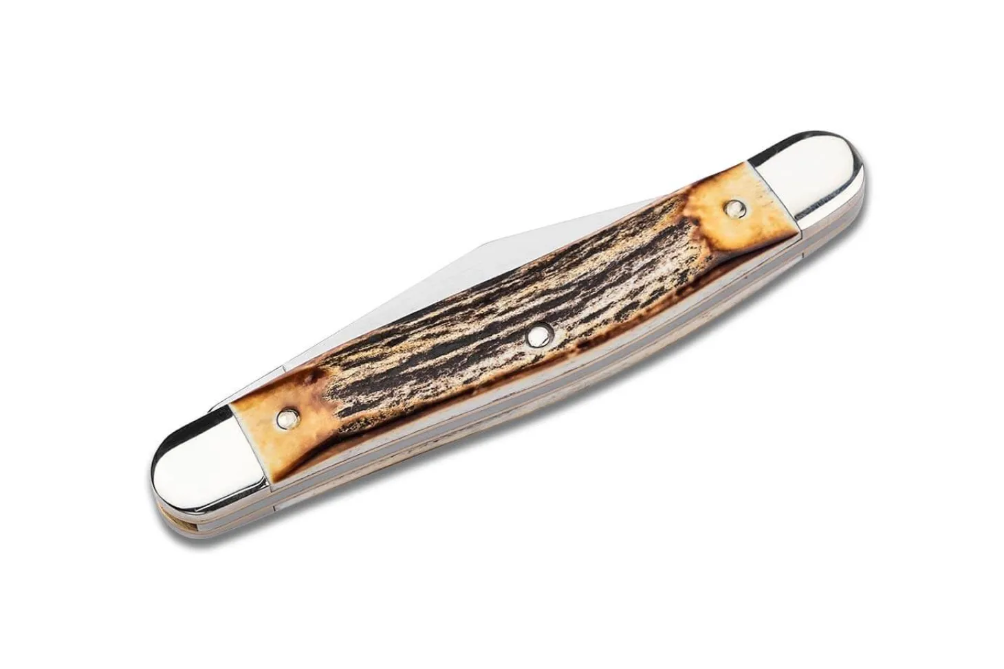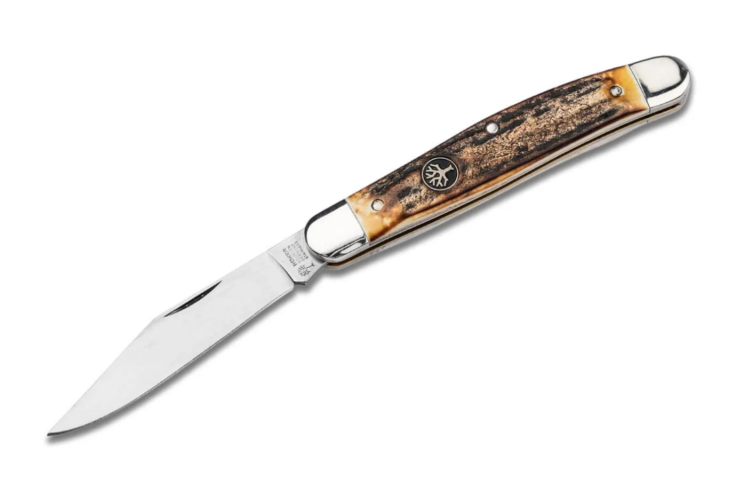 Das Böker Stockman hat längst Klassikerstatus erreicht. Als handliches Slipjoint-Taschenmesser ist es perfekt für den Alltag geeignet und hat seit Generationen in unzähligen Hosen- und Jackentaschen einen festen Platz. In dieser waidmännisch inspirierten Version ist das schlanke Messer mit einer Klinge aus 440C sowie Griffschalen aus geflämmtem Hirschhorn, stimmig eingefasst in polierten Neusilberbacken, ausgestattet. Handgefertigt in der Böker Manufaktur in Solingen.