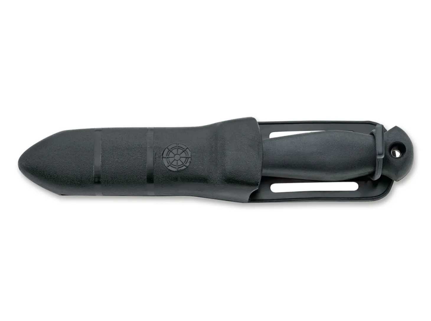 Das MAC Sub 11 verfügt über einen Kunststoffgriff mit Fangriemenöse im Griffende. Die polierte Klinge aus 4028 ist mit einer Rückensäge/-welle am Klingenrücken ausgestattet. Die beidseitig tragbare, rastende Kunststoffscheide mit Beingurten kann mit der Gummi-Sicherungsschlaufe befestigt werden.