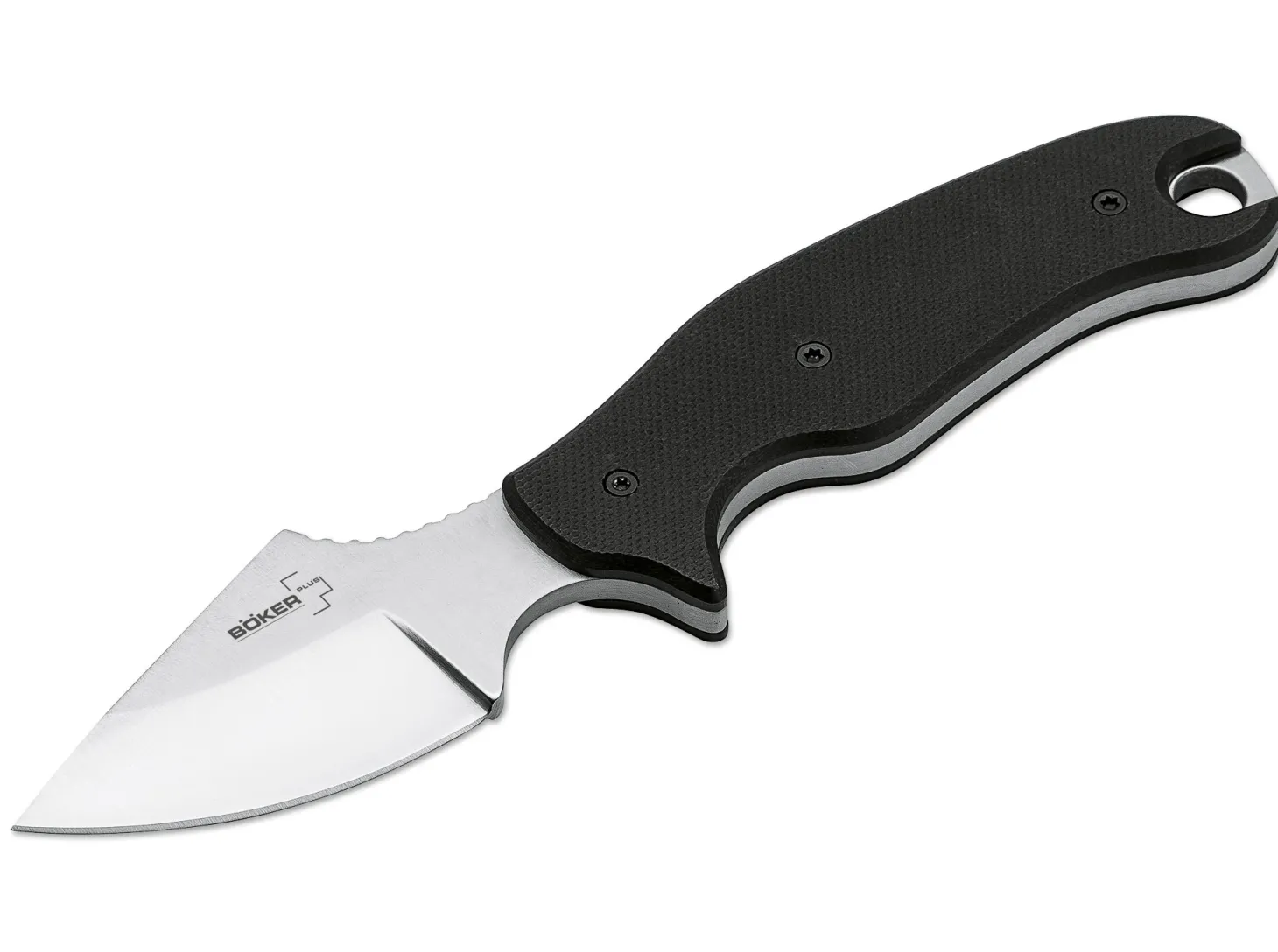 Die ungewöhnliche Kombination von vollwertigem 4-Finger-Griff und einer eher kurz gehaltenen Klinge bringt bei beim Böker Plus Tac-Neck von Christian Strauss gleich mehrere Vorteile mit sich. So ist einerseits ein komfortableres Tragen als Neck Knife möglich, ohne jedoch andererseits Einbußen bei der Ergonomie hinnehmen zu müssen. Auch die ausgezeichnete Klingenkontrolle und die effektivere Kraftübertragung machen den Gebrauch zu einem echten Vergnügen. Die ausgeprägten Mulden für Zeigefinger und Daumen ergeben zudem eine extrem sichere Handlage und ermöglichen kraftvolles Arbeiten. Der Griff ist mit rutschfest strukturiertem G10 beschalt und besitzt eine große Fangriemenöse. Lieferung mit Kydexscheide und Kugelkette.