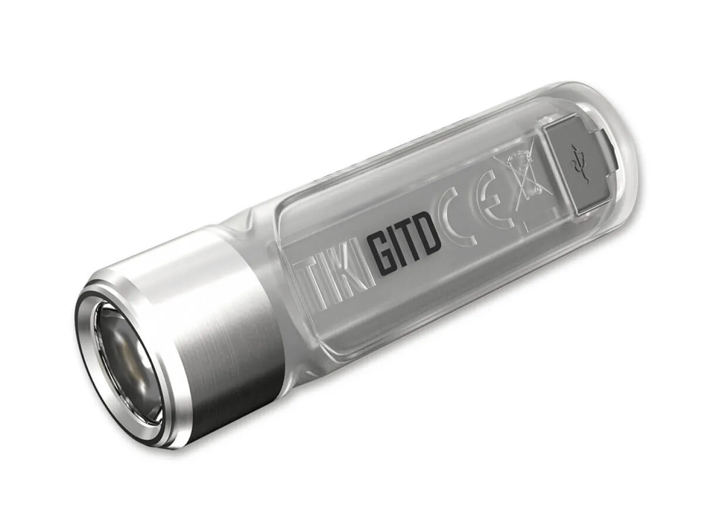 Die TIKI GITD ist eine kleine, leuchtstarke Schlüsselbundlampe, die mit einem phosphoreszierenden Gehäuse aus grün nachleuchtendem Kunststoff ausgestattet ist. Der eingebauter Li-Ion Akku kann bequem über einen Micro-USB-Port aufgeladen werden. Die OSRAM P8 LED leistet maximal 300 Lumen. Zusätzlich zur Haupt-LED verfügt die Nitecore TIKI GITD über eine CRI-Weißlicht- und eine UV-LED. Wasserdicht nach IP66.