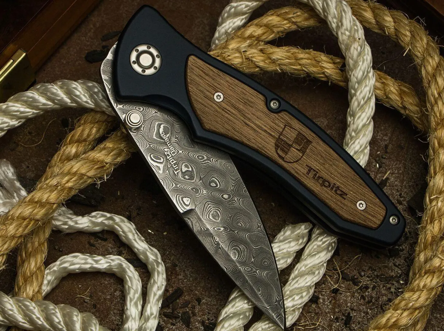 Ein Stück Geschichte wird lebendig: Die Tirpitz, Schwesterschiff der legendären Bismarck, war das größte Schlachtschiff, das jemals für die deutsche Marine vom Stapel lief. Nach Indienststellung im Februar 1941 wurde die Tirpitz während des Zweiten Weltkriegs schnell zum Schrecken der Alliierten Marineverbände im Nordatlantik. Legendär sind die zahlreichen Versuche, diesen waffenstarrenden Koloss außer Gefecht zu setzen. Nachdem die Tirpitz bereits im September 1944 durch schwere Fliegerangriffe der Royal Air Force stark beschädigt wurde, beschloss man, das Schiff als stationäre Batterie bei Tromsö vor der norwegischen Küste einzusetzen. Auch hier wurden wiederholt schwere Angriffe auf die Tirpitz geflogen, und am 12. November 1944 gelang es der Royal Air Force, durch den Einsatz spezieller „Tallboy-Bomben“ die Tirpitz im seichten Wasser zum Kentern zu bringen.Direkt nach Ende des Krieges begann ein norwegisches Spezialunternehmen, das Schiff auszuschlachten, um den hoch legierten Stahl zivilen Zwecken zur Verfügung zu stellen. Die Wissenschaft war sehr interessiert am Tirpitz-Stahl, der in der Forschung und Entwicklung für Messtechnik und sogar der Raumfahrt zum Einsatz kam. Norwegische Taucher haben für Böker aus dem Fjord Teile der speziellen Panzerung der Tirpitz geborgen. Aus diesen Stücken lebendiger Geschichte schmiedet der Böker-Damastschmied exklusiv einen außergewöhnlichen Damast mit faszinierender Historie. Das Muster Große Pyramide in 300 Lagen zeichnet die mächtige Klinge aus handgeschmiedetem Damast-Stahl und macht das Messer zu einem Höhepunkt jeder Messersammlung. Die Kombination des Tirpitz-Stahls mit Kohlenstoff-Werkzeugstählen ergibt aber auch einen extrem beanspruchbaren Damast-Stahl, der mit einer Rockwellhärte von 61 bis 63 HRC im Alltagseinsatz jeder Aufgabe gewachsen ist. Die Verriegelung erfolgt durch einen 1,5 Millimeter starken Linerlock.Der Griff aus hochfestem Aluminium AlMgSi1 (durch den Silizium-Anteil deutlich hochwertiger als das gewöhnliche AlMg3) ist hardcoat-anodisiert und lässt das Messer sicher und satt in der Hand liegen. Der umsetzbare Clip (Tip-up/Tip-down) ermöglicht das Tragen in der gewünschten Position. Als Material für die Griffeinlage haben wir heimisches Walnussholz gewählt, das aufgrund seiner überragenden Eigenschaften schon als Verwendung von Schaftholz bei Langwaffen eine lange Tradition hat. Inklusive original Tirpitz Wappen. Dieses Messer vereint auf einzigartige Weise Geschichte, Tradition und moderne Technik, vollständig von Hand in der Böker Manufaktur Solingen gefertigt. Die Lieferung erfolgt in einer hochwertigen transparenten Rahmenschatulle mit Zertifikat und Seriennummer.