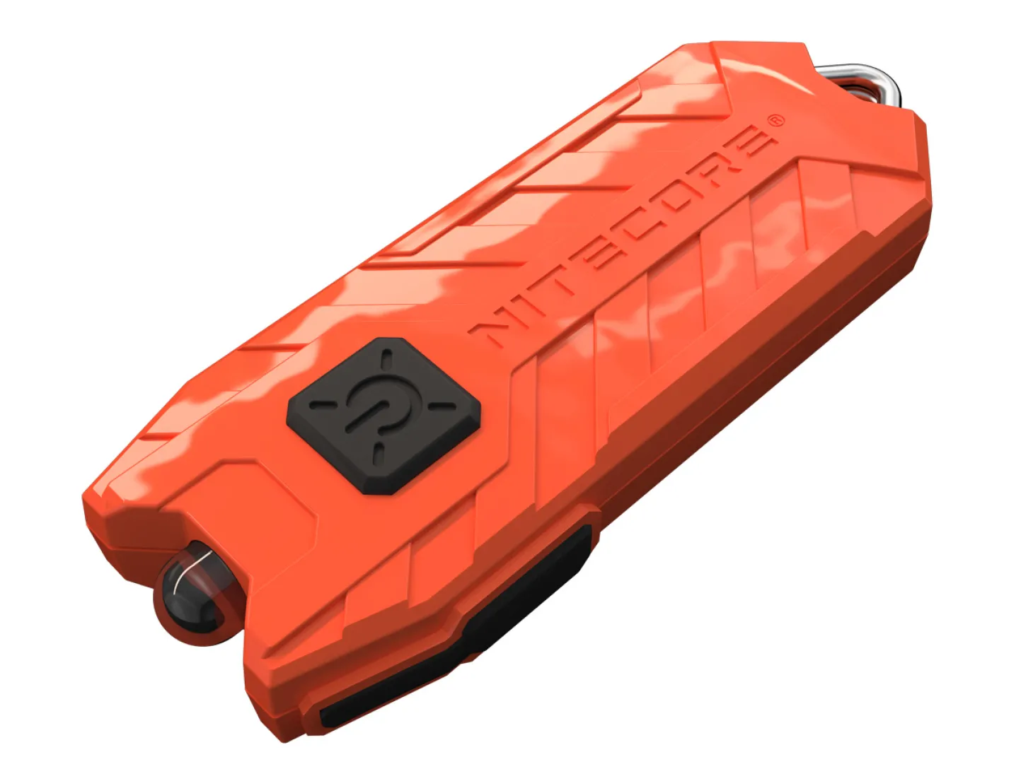 Schlüsselanhänger-Lampe. Zwei feste Leuchtstufen (1 Lumen und 45 Lumen) und zusätzlich stufenlos zwischen 1 bis 45 Lumen einstellbar. Der integrierte Li-Ion Akku kann über einen Micro-USB-Port geladen werden. Maße: 5,7 cm x 2,1 cm x 8 mm.