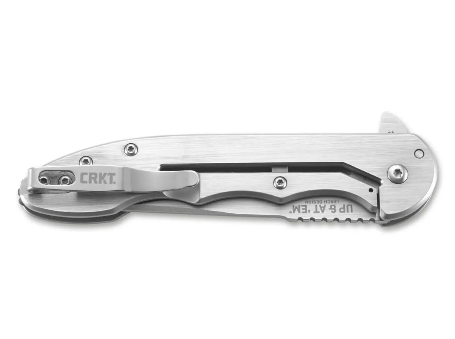 Die schlanke Ganzstahlkonstruktion des CRKT Up & At ‚Em trägt sich komfortabel und punktet mit Alltagstauglichkeit ebenso wie mit Eleganz. Der große Flipper der Two-Tone-Klinge aus 8Cr13MoV schützt die Hand im Gebrauch, und die Framelock-Verriegelung hält die Klinge sicher offen. Mit abnehmbarem Clip (Tip-up/r).