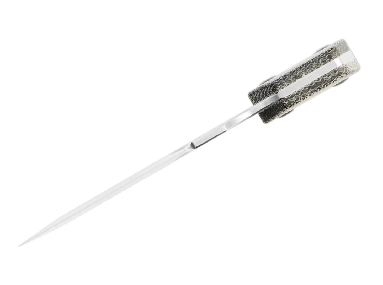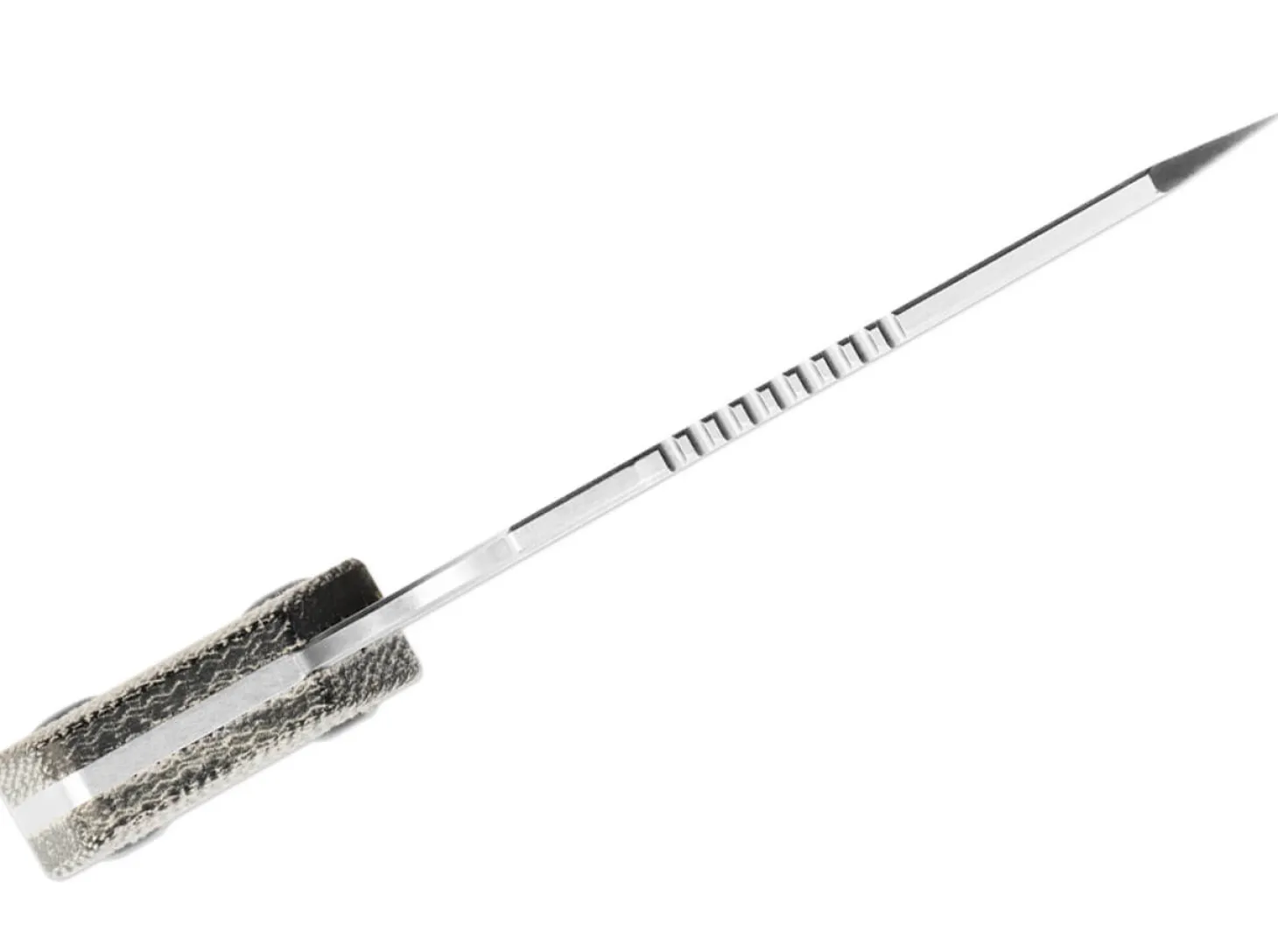 Ein Neck Knife der etwas anderen Art präsentiert Dirk Pinkerton mit dem Kizer Variable. Geometrische Formen prägen das Design, das von hoher Vielseitigkeit geprägt und funktionell durchdacht ist. Die kantige Wharncliffe Klinge aus D2 ist als Kontrast zum kreisförmigen Fingerloch sowie dem kurzen Micartagriff optimal abgestimmt. Das gesamte Messer ist klein und bequem zu tragen. Es kann als Werkzeug und auch als tägliche Zierde verwendet werden. Lieferung mit passgenauer Kydexscheide.