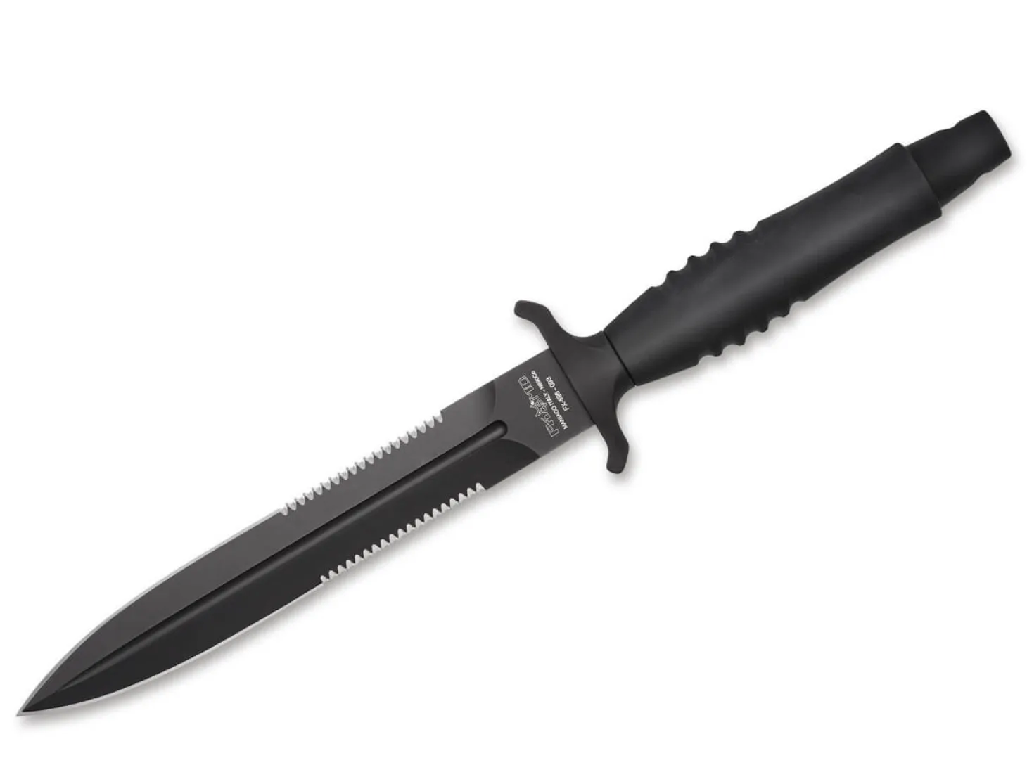 Mit toxischer Schönheit lähmt das taktische Veleno (ital. Gift) Messerfreunde und Sammler aus aller Welt. Die beidseitig abgezogene, mit partiellem Wellenschliff versehene Klinge aus N690 ist in ihrer Art äußerst vielseitig und erlaubt vom Kappen von Tauen bis zum Zerschneiden und Schnitzen kleineren Astwerks eine Menge Einsatzmöglichkeiten. Der Griff aus leichtem Aluminium ist mit einem Handschutz zur sicheren Anwendung versehen. Das vom Applegate Fairbairn Dolch inspirierte Einsatzmesser wird mit einer hochwertigen Lederscheide ausgeliefert.